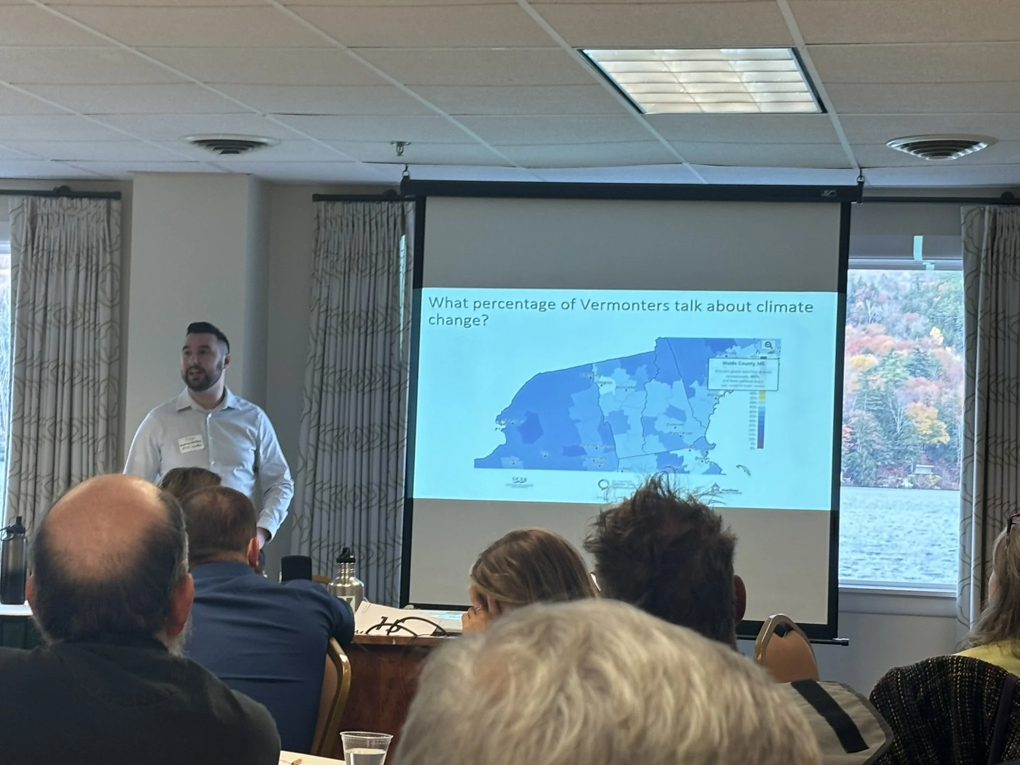 Discussed how TCC has engaged with communities across Vermont to talk about climate change science to anyone who is willing to listen. Examples were provided of different events that TCC has done in the past, like upcycled planters and climate jeopardy, to public forums and group conversations.